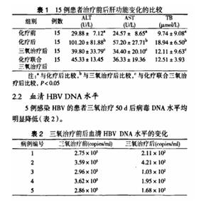 患者肝功能恢復(fù)正常后,仍原方案化療兩周期,同時聯(lián)合三氧治療,3次/周,治療前后觀察肝功能指標(biāo)。